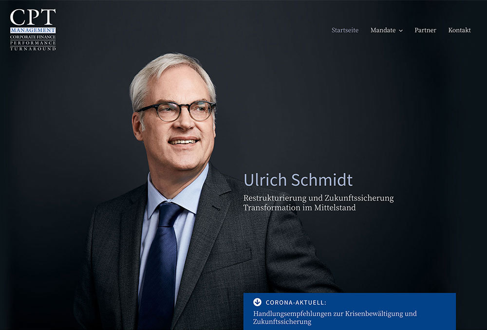 Ulrich Schmidt ist ein Interim Manager mit dem Schwerpunkt Transformation/Change und Sanierung/Turnaround. Auf seiner Webseite werden seine Positionierung, sein Leistungsportfolio und Projekte vorgestellt.