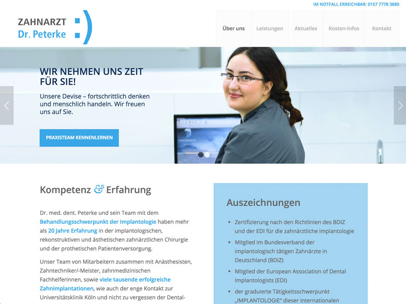 Dr. med. dent. Peterke und sein Team mit dem Behandlungsschwerpunkt der Implantologie haben mehr als 20 Jahre Erfahrung in der implantologischen, rekonstruktiven und ästhetischen zahnärztlichen Chirurgie und der prothetischen Patientenversorgung.