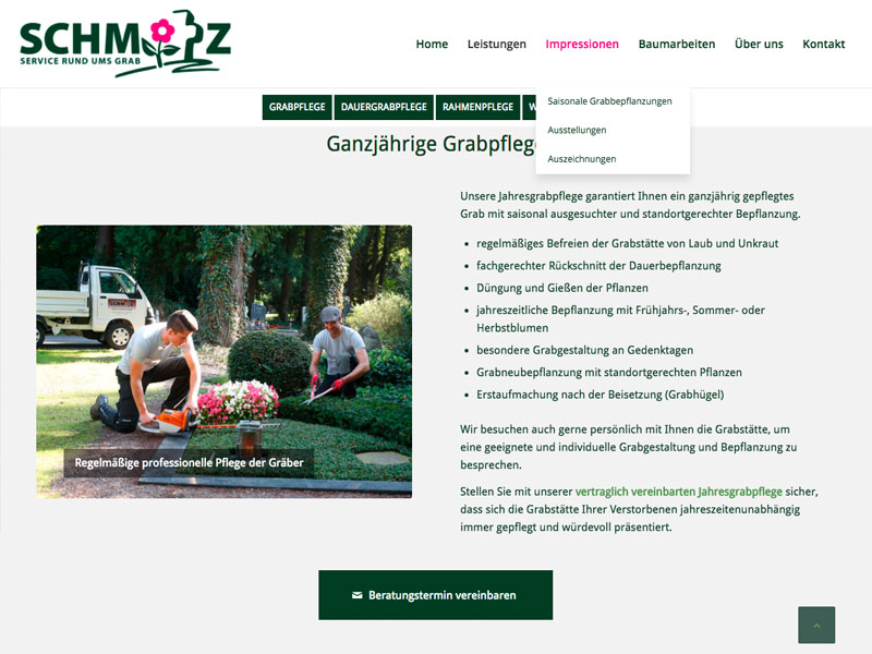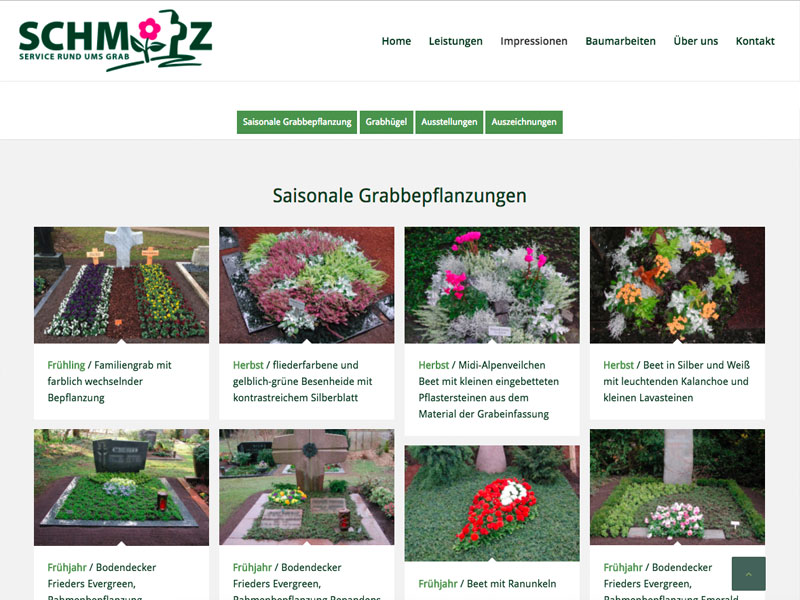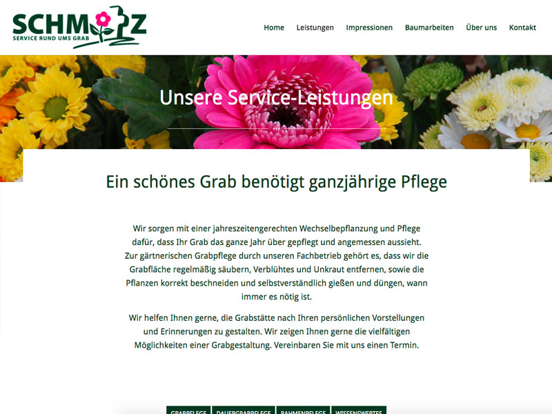 Website für eine der größten Gärtnereien am Westfriedhof. Spezialisiert auf Grabgestaltung und Grabpflege. Die Webseite stellt die Leistungen und die Historie des Familienbetriebs dar und zeigt viele Impressionen der täglichen Arbeit in der Gärtnerei und auf dem Friedhof.