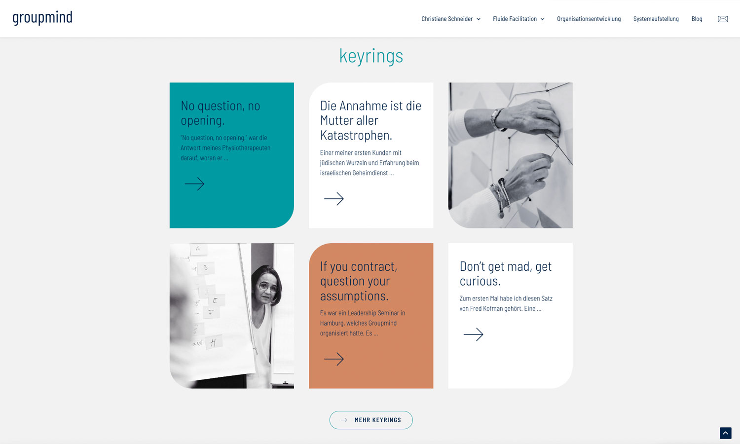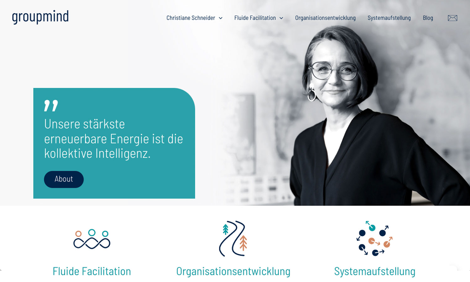 Wir haben für christiane ein neues Erscheinungsbild erarbeitet, eine neue Webseite kreiert, die Ihre Persönlichkeit, Ihre Leistungen, Referenzen und Ihre Gedanken (blog) darstellt.