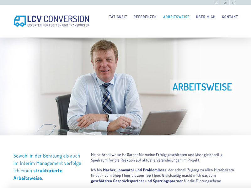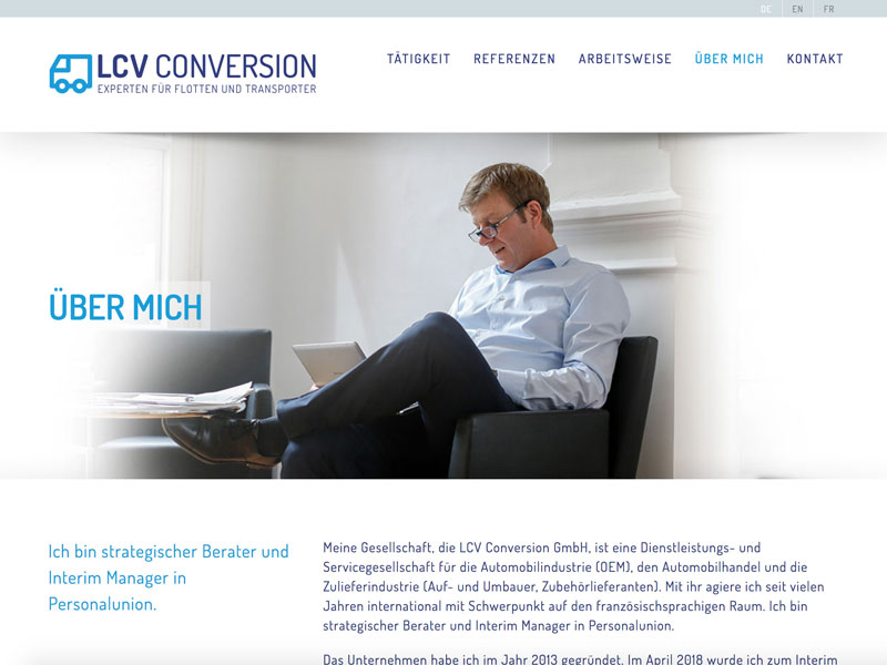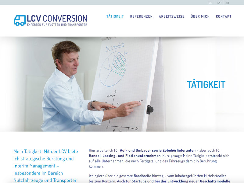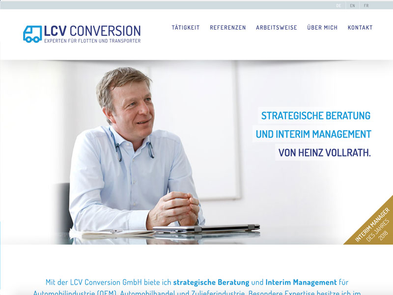 Mit LCV Conversion GmbH bietet Heinz Vollrath strategische Beratung und Interim-Management für die Automobilindustrie, den Automobilhandel und die Zulieferindustrie. Besondere Expertise besitzt er im Bereich Nutzfahrzeuge und Transporter. Die webseite stellt seine Leistungen und sein Portfolio dar.
