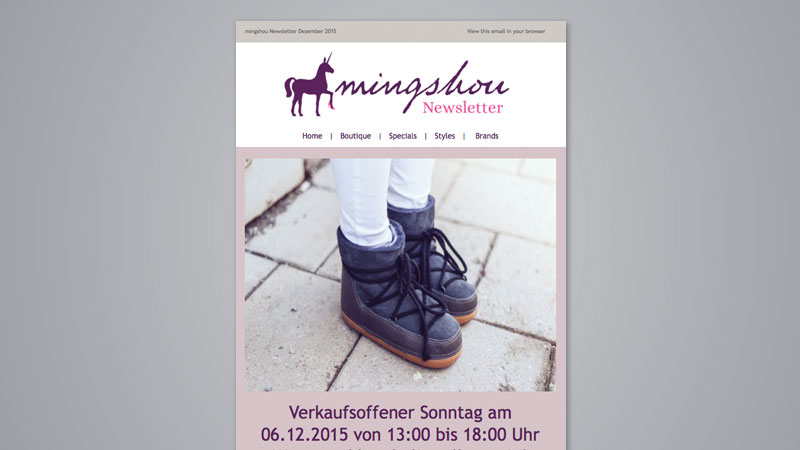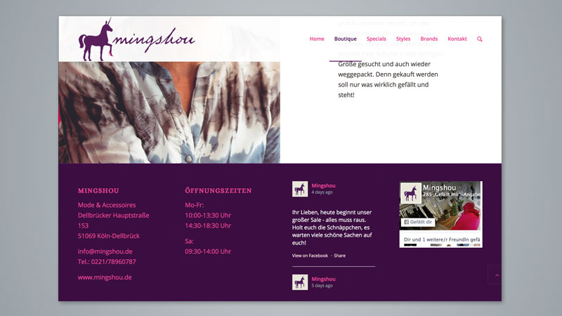 Mingshou ist ein Laden für Mode und Accessoires im Herzen von Köln-Dellbrück. Die Webseite stellt den besonderen Charme, die Beratungsqualität und das ausgefallenen und individuelle Sortiment heraus.