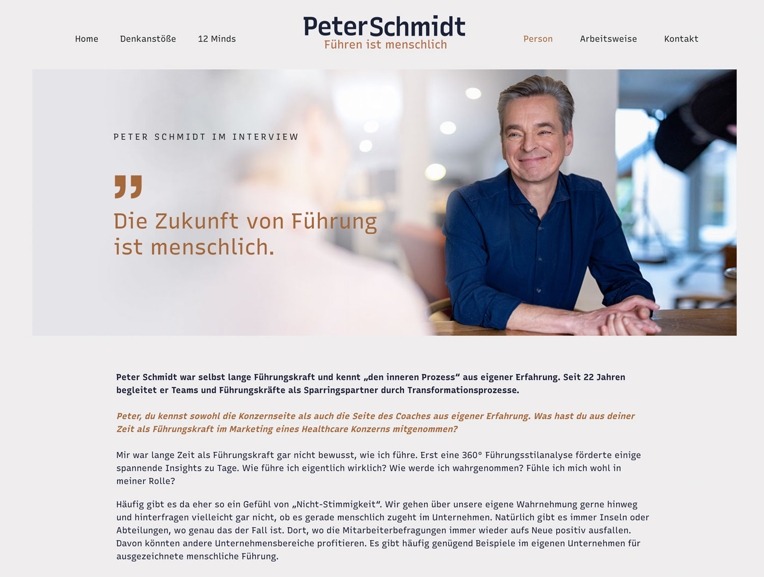 Peter Schmidt war selbst lange Führungskraft und kennt „den inneren Prozess“ aus eigener Erfahrung. Seit 22 Jahren begleitet er Teams und Führungskräfte als Sparringspartner durch Transformationsprozesse.