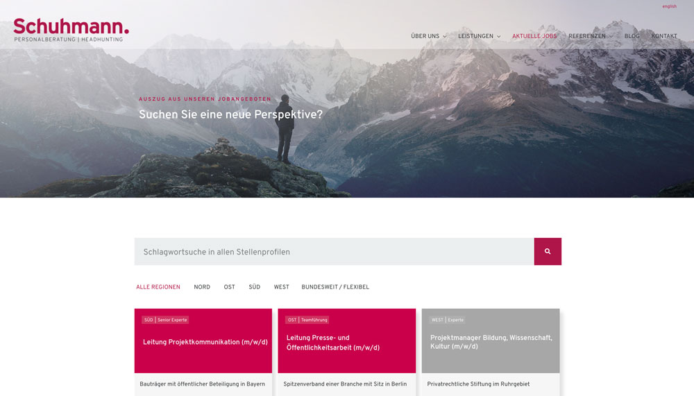 Seit vielen Jahren ist die Schuhmann Personalberatung im deutschsprachigen Raum Spezialist für die Besetzung von Positionen aus Kommunikation und Marketing.