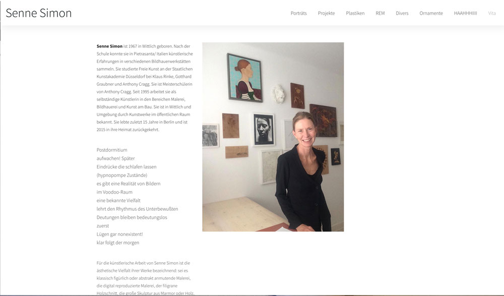 Senne Simon studierte Freie Kunst an der Staatlichen Kunstakademie Düsseldorf bei Klaus Rinke, Gotthard Graubner und Anthony Cragg. Sie ist Meisterschülerin von Anthony Cragg. Seit 1995 arbeitet sie als selbständige Künstlerin in den Bereichen Malerei, Bildhauerei und Kunst am Bau. Sie ist in Wittlich und Umgebung durch Kunstwerke im öffentlichen Raum bekannt.