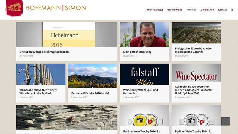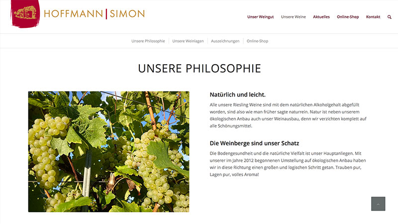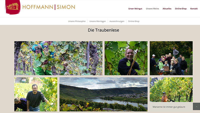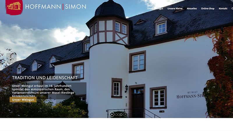 Das Familien-Weingut Hoffmann-Simon befindet sich in Piesport an der Mosel. Der Schwerpunkt gilt dem Mosel-Riesling. Auf der neu konzipierten Website wird das leidenschaftliche Bestreben herausgearbeitet, die Besonderheiten jeder dieser Weinlagen schmeckbar zu machen.